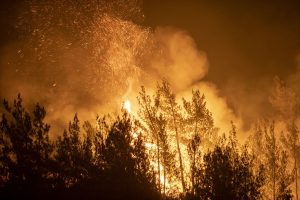 Tarım ve Orman Bakanı Vahit Kirişci ve İçişleri Bakanı Süleyman Soylu da helikopterle yangın bölgesinde incelemede bulundu.