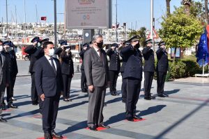 Emniyet Müdürü Mete Durukan, Bodrum Belediye Meydanı’ndaki Atatürk Anıtı’na, çelenk bıraktı.