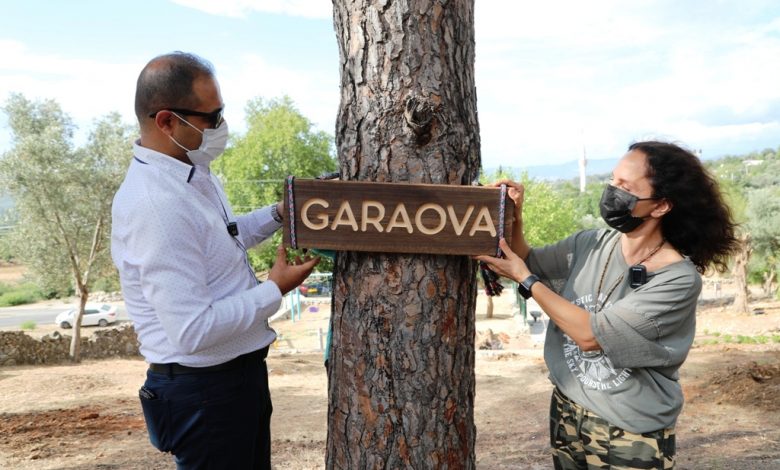 Etrim Mevkiinde, lavantaların boy gösterdiği ve çiçek açtığı lavanta bahçesi içinde bulunan ağaçların hepsine de isim verileceğini ifade eden Başkan Yardımcısı Tayfun Yılmaz, Sertab Erener ile birlikte ilk olarak İsmail Hakkı Tonguç Tarım Okulu ve Müzesi önünde bulunan çam ağacına “Garaova” ismi verildi.