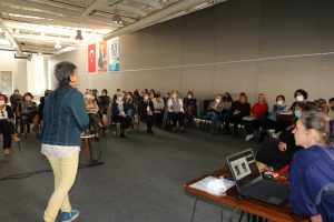 Bodrum Kent Konseyi Kadın Meclisi Sözcüsü Avukat Evrim İnan ise “Uzun bir süre sonra nihayet bir aradayız ve bir arada olmak her zaman olduğu gibi çok heyecanlı. Bugün Bodrum hayalimizi konuşmak için bir aradayız. 56 mahallede yaşayan biz kadınların Bodrum hayalini, sorunları biliyoruz ve birçok buluşmada ve birçok alanda bu sorunları tespit ve ifade ettik ve sorunu bilen tarafta olan bizler, hayatın her alanında olduğu gibi, çözümüne de vakıfız. Çözümleri hepimiz her gün hayatlarımızda deneyimliyoruz, gerek evde, gerek işte, gerekse sokakta ya da hayatlarımızın diğer alanlarında. Bu alanlarda var olan çözümler ile hayatın da her alanını yeniden var ediyoruz. Öyle ise Bodrum hayalimizle birlikte çözümün belirleyicisi olma hakkını da Bodrum’un her mahallesinde, her sokağında, her köşe bucağında hayata geçirelim. 56 mahalle ile bu kentteki eşitlik hayalimiz var edelim. Yerel Eşitlik Eylem Planının nasıl oluşturulacağı, kimleri nasıl kapsadığını, özetliyoruz ve ardından hep birlikte, ortaklaştığımız hayalimizi konuşup oluşturacağız” dedi.