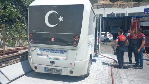 Konacık Mahallesi’ndeki Sanayi Sitesi’ne bakım için getirilen yolcu minibüsünde park halindeyken henüz belirlenemeyen nedenle yangın başladı.