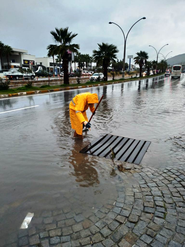 Özellikle sabaha karşı şiddetini arttıran yağış sonrası; Bodrum’da Belediye Temizlik İşleri, Fen İşleri, Zabıta, Destek Hizmetleri ile Park ve Bahçeler Müdürlüğü ekipleri sahada görev başındaydı.