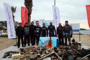 Türkbükü Şehit Gaffur Kaynar İlkokulu öğrencilerinin kıyı temizliği yaparak destek verdiği etkinlik sonunda; metal, plastik, cam ve tekstil atığı olmak üzere toplamda 230 kilo atık toplandı.