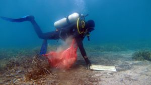 Bodrum’da dalgıçlar deniz dibi, öğrenciler de kıyı temizliği yaptı.