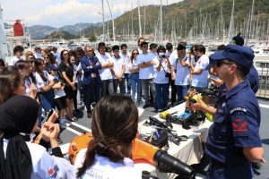 Muğla Valiliği himayesinde Sahil Güvenlik Güney Ege Gurup Komutanlığı ve İl Milli Eğitim müdürlüğü işbirliği ile gerçekleşen eğitimde gençlere TCSG-UMUT gemisi gezdirilerek tanıtıldı.