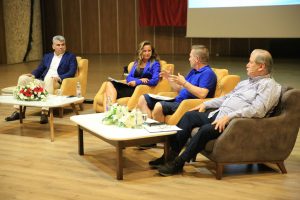 Söyleşide Başkan Yardımcısı İbrahim Akbaş, konuşmasına Bodrum Belediye Başkan Ahmet Aras’ın mesajını ileterek başladı. Akbaş, “Maalesef ciğerlerimizi yüreğimizi yakan Marmaris yangını 2 gündür devam ediyor. Başkanımız da kendileri Marmaris’te. Sizlere saygı ve sevgilerini sunuyorlar. Başkanımız Ahmet Aras, Bodrum’un değerlerine, sanata, sanatçıya kültürüne ve geçmişine sahip çıkıyor ve bunun somut adımlarla bir iz kalmasını istiyor. Hatta bizim ‘İz Bırakanlar’ diye belediye yayınımızdan çıkan bir kitabımız var. Bu kitabımızda Halikarnas’tan günümüze o kadar çok tarihimiz var ki o kadar çok anılarımız var ki onlardan bir tanesi de Amiral Turgut Reis’tir, Biz, Bodrum Belediyesi olarak her zaman geçmişimize sahip çıkıp bu geçmişimizi ilerleyen dönemlere aksettirmek için elimizden gelen desteği vereceğiz” dedi.