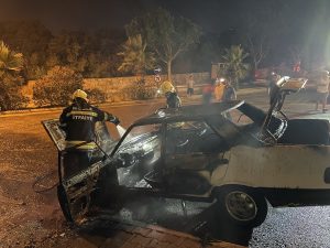 Bodrum’da seyir halindeyken alev alan otomobil, yanarak kullanılamaz hale geldi.