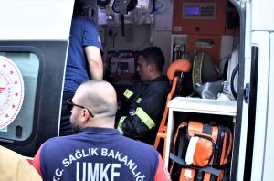 Dumandan etkilenen bir itfaiyeciye, 112 Acil Servis ekipleri ambulansta müdahale etti.