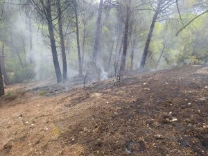 Havadan ve karadan yapılan müdahaleyle söndürülen yangında yaklaşık 1 hektarlık alan zarar gördü.