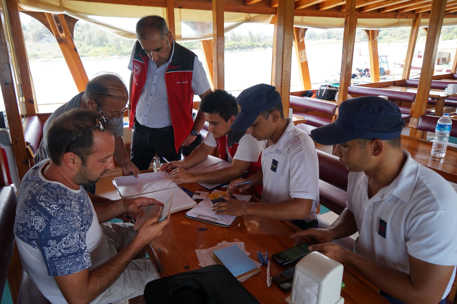 Muğla Tarım ve Orman Müdürlüğü ile Sahil Güvenlik Komutanlığı ortaklaşa eş zamanlı 4 ilçede tur teknelerine denetim gerçekleştirdi. Özellikle turizmin yoğun olduğu Ula, Bodrum, Marmaris ve Fethiye İlçelerinde tüm ekipler karadan ve denizden denetimlere başladı. Gün boyu devam eden denetimde gerekli uyarılar yapıldı.