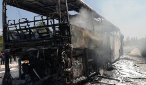 Herhangi bir yaralanma veya can kaybının yaşanmadığı olayda, otobüs kullanılamaz hale geldi.