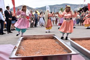 Türk Mutfağı Haftası kapsamında Bodrum’da düzenlenen ilk etkinliğin adresi Barış Meydanı oldu. Yöresel halk oyunları sonrasında ikram edilen lokum pilavı, lokma ve diğer yiyeceklerin tadıldığı programa Bodrum Kaymakamı Bilgehan Bayar ve Belediye Başkan Vekili Tamer Mandalinci katıldı.