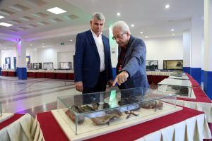 Çanakkale 1915 Savaş Malzemeleri Müzesi’ni ziyaret eden Belediye Başkan Yardımcısı İbrahim Akbaş’a müze hakkında bilgilendirme yapan, Müze Koordinatörü Cengiz Yürükaslan bir günde yaklaşık 600 öğrencinin müzeyi ziyaret ettiğini ifade etti.