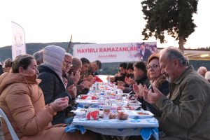 İftar programında konuşan Başkan Aras, yaşanan büyük afet sonrası yaraları sarmaya devam ettiklerini söyleyerek Bodrum halkının destekleriyle afetzedelere yardımların sürdüğünü belirtti. Burada kurulan iftar sofralarının vatandaşların desteğiyle deprem bölgesinde de kurulduğunu ifade eden Başkan Aras, “Allah hepinizden razı olsun. Hepinize davetimize icabet ettiğiniz için teşekkür ediyorum. Herkese hayırlı Ramazanlar diliyorum. Ayrıca şu an sofralarımızda olan kayısıları sizlerin parasıyla Malatya’da zor durumda olan afetzede bir üreticiden satın aldık. Bunun için de hepinize teşekkür ederim. Afiyet olsun” diye konuştu.