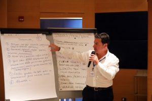 Prof. Dr. Oğuz Babüroğlu moderatörlüğünde gerçekleşen Arama Konferansı’nda “Gelecek Senaryoları ve Mevcut Durum Değerlendirmesi”, “Gelecek Tasarımı” ve “Stratejik Yol Haritası” grup çalışmaları gerçekleşti. Katılımcılar, ortak akıl ile fikirlerini sonuca ulaştırırken grup çalışmaları sonucunda sunumlar ile ortaya çıkan fikir ve projeleri diğer grup üyeleri ile paylaştı.