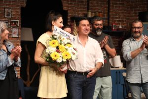 BŞT Oyuncusu Barış Hayta ve oyunun yönetmeni Ali Şahin, Limonata’nın sahnelenmesindeki katkılarından ötürü kişi ve kurumlara teşekkür ederken fiili olarak oyunun çıkmasına emek verenleri sahneye çağırdı.