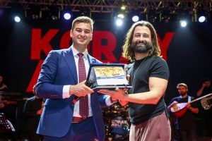 Konuşmaların ardından sahne alan Koray Avcı meydanda toplanan büyük kalabalıkla birlikte şarkılarını söyledi. Yaklaşık bir saat sahnede kalan ünlü sanatçı ve orkestrası izleyenlerden büyük alkış alırken konser sonunda Başkan Adayı Mandalinci Koray Avcı’ya plaket takdim etti.