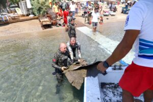 Bodrum Belediyesi Destek Hizmetleri ve Temizlik İşleri Müdürlüğü organizasyonuyla gönüllü dalış ekibi tarafından gerçekleştirilen etkinliğe Bodrum Belediye Başkanı Tamer Mandalinci’yi temsilen Belediye Başkan Yardımcısı Yaşar Çelikkan, ilgili birim müdürleri ve personelleri ile Türkbükü Mahalle Muhtarı Yücel Ertuğrul katıldı.