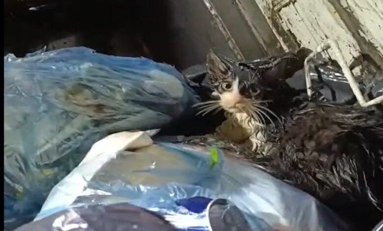 Personelin dikkati sayesinde ölümden dönen kedi, konteynerden çıkarıldıktan kısa bir süre sonra hızla uzaklaşarak gözden kayboldu.