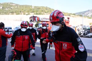 Olası afet durumlarında kurumlar arası iş birliğinin ve koordinasyonun test edildiği tatbikatta BAK ekiplerine; 112 Acil Sağlık, Bodrum İtfaiye Grup Amirliği, AFAD, UMKE, MAG, SAR ve Muğla 911 ekipleri de eşlik etti.