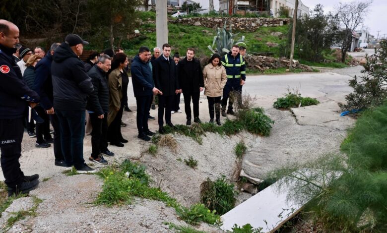 Olumsuz hava koşullarına rağmen saha ziyaretlerini sürdüren Bodrum Belediye Başkanı Tamer Mandalinci, İslamhaneleri Mahallesi’nde şiddetli ve ani yağışlar sonrası oluşabilecek olumsuzlukları yerinde inceleyerek gerekli tedbirlerin alınması için ilgili birimlere talimat verdi.