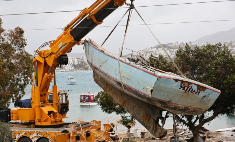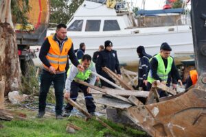 Çalışmalar kapsamında, alan içerisinde uzun süredir atıl durumda bulunan tekneler ile izinsiz olarak kurulan iskeleler kaldırılıyor.