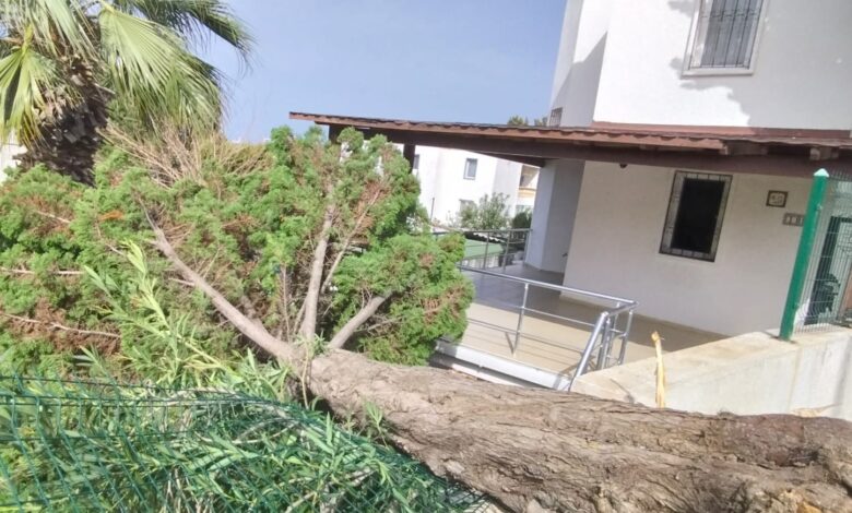 Bodrum genelinde etkili olan fırtına nedeniyle ağaçlar devdildi.