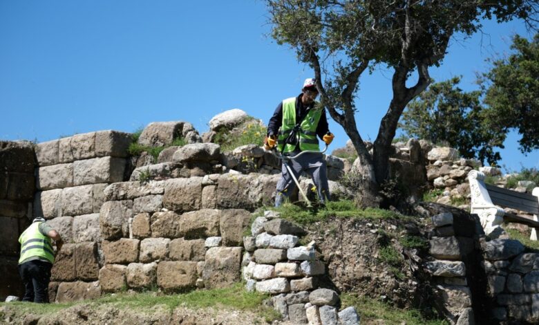 Bodrum Belediyesi Park ve Bahçeler Müdürlüğü ekipleri, Turizm Haftası etkinlikleri öncesinde Antik Halikarnassos Surları’nda kapsamlı bir bahar temizliği gerçekleştiriyor.