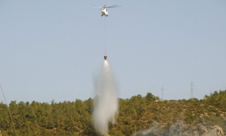 Yerleşim yerine yakın olan yangını 2 helikopterin müdahalesiyle kontrol altına alan ekiplerin soğutma çalışmaları devam ediyor.